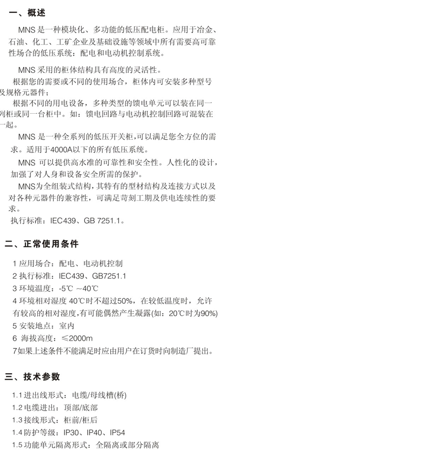 MNS型低壓抽出式成套開關設備